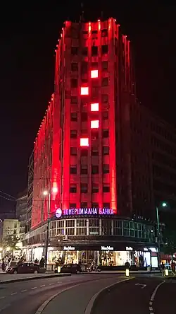 Palace Albanija (Serbian: Палата Албанија, Palata Albanija, literally "Palace Albania") is a high-rise building in Belgrade, Serbia. Important construction and architectural innovations were incorporated into the project, which made Albanija an exceptional building endeavor in the Balkans.[1] When completed in 1939, it was the first skyscraper in Southeast Europe.[2] It remained the tallest building in Belgrade for 3 years, until being surpassed by BIGZ building in 1941. It remained the tallest building in the old part of Belgrade for the next 34 years, until being surpassed by the Beograđanka ("Palace Belgrade") in 1974.[1][3]