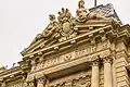 Triangular pediment on central avant-corps, heraldic element, a pair of Muse sculptures and decorative dome
