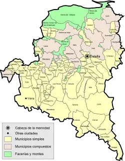It resides within the valley of Santesteban de la Solana, under the historical district of the Merindad and Judicial District of Estella. Santesteban de la Solana was formed by the current municipalities of Arróniz, Barbarin, Igúzquiza, Luquin, and Villamayor de Monjardín.[13]