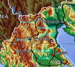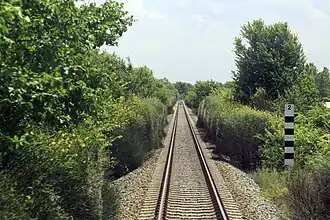 The Palaiofarsalos to Kalambaka railway is a standard-gauge railway line that connects Kalambaka with the mainline station of Palaiofarsalos in Thessaly, Greece.[2] Originally opened as a metre-gauge railway in 1886, it was converted to standard gauge in 2001.