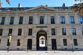 The palace was built between 1861 and 1864 by Jacques-Martin Tétaz in the objective to become stables for Napoleon III, as well as house their personnel. In 1881, it became a dependency of the presidency under the Third Republic. Then in 1947, it housed the French meteorology office.[1] The palace has become a French Monument historique since 30 October 2002.[2]