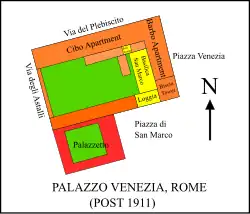 4. ^ The so-called ‘Palazzetto’ in the Palazzo di Venezia Complex: A small construction history among the huge transformation events of the Rome centre in the early twentieth century Caterina F. Carocci, Renata Finocchiaro and Valentina Macca, University of Catania, Italy, post 2019, p.157 [3]