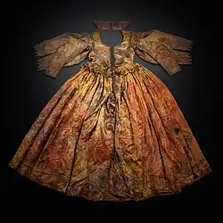 The silk dress is largely intact and is "unique" as a remaining artifact of 17th-century clothing textiles, according to textile restorer Emmy de Groot.[6] It consists of a bodice, full skirt with pleats, and sleeves with ruffles.[3] It is typical of dresses of the 1620s to 1630s in Western Europe and is believed to be an everyday dress.[3]