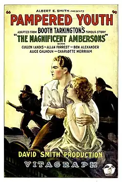 Pampered Youth is a 1925 American silent drama film directed by David Smith and starring Cullen Landis, Alice Calhoun, and Allan Forrest. It is an adaption of the 1918 novel The Magnificent Ambersons by Booth Tarkington.[3][4] It was one of the final films produced by Vitagraph Studios before the firm was absorbed into Warner Bros.