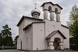 In 1996, a temple was founded in the settlement in honor of the Sovereign Icon of the Mother of God.[2] Initially, the boiler room of the hospital was adapted for the temple. Then, from 2013 to 2017, the temple was rebuilt by the parishioners and the rector at their own expense.[3]