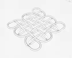 The Pan Chang Knot is one of the eight symbols of Buddhism. It communicates that religion's belief in a cycle of life with no beginning and no end. It was illustrated in a painting of the Emperor Xiaozhong (the second ruling member of the southern Song dynasty, which existed from AD 960 to 1279) that is now in the Palace Museum in Beijing. The knot is also known as the Mystic Knot, and is believed to impart good fortune to those who wear and observe it. It is an intricate knot that forces the tyer to think in three dimensions.[2]