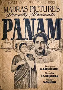 Panam (transl. Money)[1] is a 1952 Indian Tamil-language film, directed by N. S. Krishnan and written by M. Karunanidhi from a story by N. V. Babu. The film stars Sivaji Ganesan, N. S. Krishnan, B. R. Panthulu and Padmini. It was also the first of the many collbaborations between Ganesan and Padmini.[2][3][4]