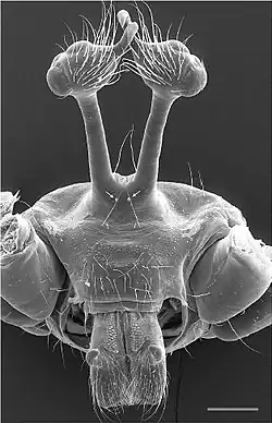 Male P. camiguin, frontal view, showing elongated eyestalks with pointed processes