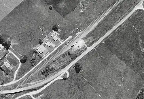 In 1926 a locomotive fell over due to gravel on the level crossing.[20][21] Bridge 131A is 80.363 m (263.66 ft) long and carries SH2 over the railway.[22] It replaced the level crossing[23] in 1940[24] and was renewed as part of the 2014 upgrades.[25] On 2 July 1967 the station closed.[16]