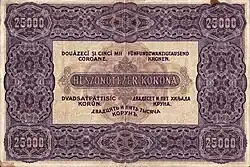 25000 korona | 213 × 147 mm | 6 September 1922 | |||