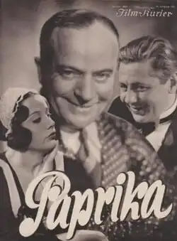 Paprika is a 1932 German comedy film directed by Carl Boese and starring Franciska Gaal, Paul Hörbiger and Paul Heidemann.[1] Made by the German branch of Universal Pictures, it was based on a hit play by Max Reimann and Otto Schwartz. A French-language version and an Italian-language version were released the following year. It is also known by the alternative title of Marriage in Haste. In the US, the film was released almost 2 years later in German on 18 May 1934 in the Yorkville theater under the title Wie man Maenner fesselt (How to charm men).