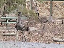 There are over 120 species of birds recorded in the conservation park. These include the emu which was introduced into the park in 1967. In the aquatic areas of the park birdlife includes the grey teal, Australasian grebe and cormorants. The South Para river and nearby woodland areas support birds such as white-faced herons, black ducks, white-browed babblers, black-chinned honeyeaters and eastern spinebills. A range of birds occur throughout the park including such species as the common bronze wing, scarlet robin, black-faced cuckooshrike, restless flycatcher, grey currawong, little raven and the New Holland honeyeater. white-throated treecreepers, brown treecreepers and white-winged choughs are observed in the woodland areas while laughing kookaburras, red-rumped parrots and peaceful doves prefer the grass and woodland areas. In areas of dense groundcover family groups of superb fairywrens search for food. Flitting in the open areas are jacky winters and yellow-rumped thornbills.[9][18]