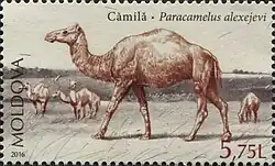 Restoration of Paracamelus alexejevi on a 2016 stamp of Moldova.