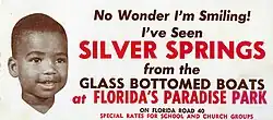 Paradise Park was a tourist attraction and the only local recreational facility "for colored people", as its sign said,[1] about 1 mile (1.6 km) from Silver Springs, near Ocala, Florida. It offered similar features, such as glass-bottom boats, "jungle cruises," a petting zoo,[2] a dance pavilion with jukebox, performers,[3]: 164 a softball field, a horseshoe toss,[3]: 159 and a sandy beach with lifeguards. It operated from 1949 to 1969, closing soon after desegregation of Silver Springs.[4] It served African American patrons prohibited from Silver Springs' boat rides that were limited to whites only.[3]: 5–7 As was the rule during the allegedly separate but equal period, "Paradise Park was alright, but it wasn't up on a par with the white parts of Silver Springs."[3]: 159