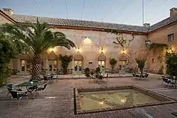 The Parador de Almagro, also known as the Convento de Santa Catalina de Siena, is a four-star Parador hotel located in the town of Almagro, in the province of Ciudad Real, in the autonomous community of Castile-La Mancha, Spain. It was converted from the ruins of the seventeenth century Franciscan Convent of Santa Catalina.[1] It was irretrievably damaged during the Spanish Civil War. In 1969 it was ceded to the Spanish government for conversion into a Parador.[2] Work on the rebuilding and conversion began in 1972. The architects copied the architectural style of the original building, using materials sourced locally. For hotel use the historical layout of the convent was extended into the surrounding grounds with the construction of fifty-five guest rooms, numerous hospitality areas and fourteen patios.[3]