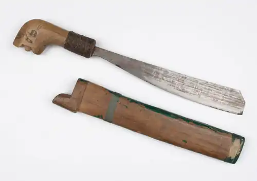 An Iban-made parang chandong, used by a serviceman during the Malayan Emergency (1948–1957) as seen in the National Army Museum UK.