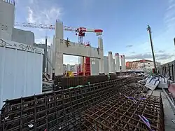 While major construction contracts for the line itself haven't been awarded yet, preparatory work is underway at Saint-Denis–Pleyel and Champigny Centre stations, which are being built for other lines but will include platforms for Line 15.[18][13]