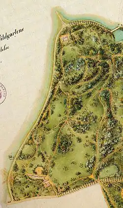 Map of Park Glienicke, Detail without park extensions, (P. J. Lenné, 1831)
