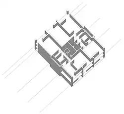 The site is steeply sloping (gradient 1 in 10), enabling the designers to maintain a constant roof level though the buildings ranged from four to 13 storeys. There were access roadways 10 feet (3.0 m) on every third storey; these serviced a one-storey flat beneath and a two-storey maisonette on that level and on the level above. The horizontal design repeated itself every three bays, centred on a H-frame that carried the services and stair columns. Each of these units contained a one-bedroom flat, a two-bedroom flat, a two-bedroom maisonette and a three-bedroom maisonette, and stair columns. The kitchens and bathrooms were vertically aligned, allowing simple ducting for services and the Garchey waste disposal system.[27]