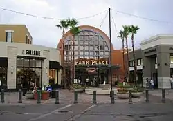 Park Place was originally dedicated as Park Mall in May 1975,[1] but was renovated beginning in 1998 and renamed Park Place the following year.[2] The mall is named after Sears Park, which was previously located at the same site and included what was originally a standalone Sears store (which first opened in the fall of 1965), which became the current mall's major anchor (the "Sears Park" linear park site is presently limited to its extreme southern and western portion).[3] The original stores that opened along with Sears were additional anchors The Broadway (became Macy's in 1996), Furr’s Cafeteria, Mann Theatres, and Diamond's (became Dillard's in 1986), as well as 51 other stores. In 2015, Sears Holdings spun off 235 of its properties, including the Sears at Park Place, into Sertiage Growth Properties.[4] The Sears store later closed in 2018 as part of the company's ongoing financial woes, and was replaced by a Round1 in October 2019.[5] The electric substation on the premises is named Sears Substation because it was there a decade before the mall was built. From 1970 to 1996 the owner was the mall's original developer, Joseph Kivel. On May 28, 2020, it was announced that Macy's would be closing in late 2020.[6] After Macy's closed, Dillard's became the only traditional anchor store left.