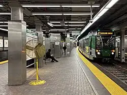 Around 2000, the MBTA outfitted the Green Line platforms with portable lifts as a temporary accessibility measure to serve the new low-floor Type 8 streetcars.[57] A $15 million project to build raised low platforms at Park Street and Haymarket began in 2001.[58][59] The work at Park Street was done in segments to allow service to the station to continue during construction.[60] Construction was completed in 2003.[61]