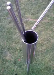 Although some people carry their balls in their hand between rounds or place it in their pockets, others invest in various ball-carrying devices. The most basic is a moulded length of stainless steel which is attached to the belt or shoelaces. High-end carriers resemble a leather fanny pack and can hold multiple balls, cellular phones, score cards and other personal items.