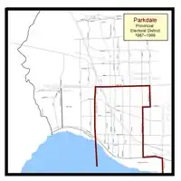 The final configuration of the Parkdale electoral district 1987–1999.