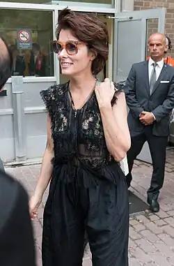 Posey collaborated with Allen again in Café Society (2016), in which she played a "witty and engaging" modeling-agency owner and high-society fixture, alongside Steve Carell, Jesse Eisenberg, and Blake Lively.[81] Critically and commercially, the film fared better than Irrational Man.[82] In 2016, she starred as one half of a couple facing a dream-home-building strife in Jonathan Parker's comedy The Architect,[83] and as an aging dance artist in Guest's Mascots. Her performance in the latter was positively singled out by some critics.[84] Her next film role was that of a renowned scholar's longtime assistant in Kogonada's directorial debut Columbus (2017). She was described as "vibrant" and "excellent" by Geoff Berkshire of Variety and Peter Bradshaw of The Guardian, respectively.[85][86] She played the "unstable" assistant of a "volatile" filmmaker in James Oakley's caper film The Con Is On (2018), co-starring Uma Thurman, Crispin Glover, and Alice Eve.[87]