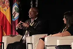 Ahead of the 18 May 2011 local elections, Tau was the ANC's candidate in Johannesburg, touted to succeed Masondo as Mayor of Johannesburg.[11][12] The ANC retained a comfortable majority of seats in the city council, and Tau was elected as mayor in the inaugural council meeting on 26 May, easily defeating a challenge from Mmusi Maimane of the opposition Democratic Alliance (DA).[13][14] In October 2011, Tau was additionally elected as regional chairperson of the ANC's Johannesburg branch, again succeeding Masondo.[15]
