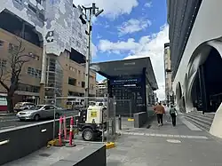 The lift and north-east entrance on Grattan Street/Royal Parade intersection, September 2024 -