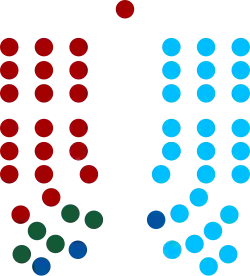 The Parliament of Fiji consists of 55 members (plus a speaker) and is led by the prime minister, who is the leader of the largest party of government. The current Parliament was elected in the 2022 election, with a coalition of the People's Alliance, the National Federation Party (NFP), and the Social Democratic Liberal Party (SODELPA) holding a majority of 29 seats. FijiFirst, led by Frank Bainimarama, holds 26 seats and is the sole opposition party. The current prime minister is Sitiveni Rabuka.
