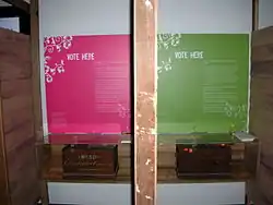 Later in 1856, in preparation for responsible government, the old Legislative Council passed an Electoral Act providing for the secret ballot system of voting to be used for the new parliament, also known as the Australian Ballot.[19]