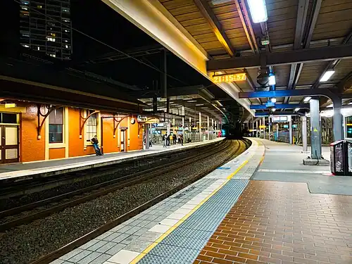 ![]() Westbound view from Platform 1, November 2023 | ||||||||||||||||||||||||||||||||||||||||||||||||||