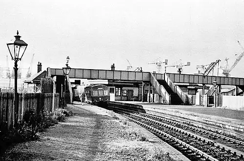The station was situated beside the imposing building of the Meadowside Granary,[2] which has since been demolished and replaced by part of the Glasgow Harbour development. Passenger services stopped using Partick West in the 1960s as part of the Beeching Axe which drastically cut rail services across the United Kingdom.