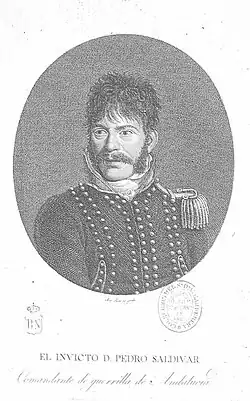 The partidas realistas began their operations in the earliest days of the constitutional regime, with the first known groups emerging in Galicia as early as April 1820.[5] Organized by absolutist exiles in France and closely tied to the royal palace,[6] these militias employed tactics reminiscent of the guerrilla warfare used during Spain's War of Independence against Napoleon Bonaparte (1808–1814)—some of their members were even veterans of that earlier conflict, now fighting for the royalist cause.[7] Historians Pedro Rújula and Manuel Chust argue that this continuity with past guerrilla efforts explains their rapid and effective mobilization: "Many who fought the French had not only grown accustomed to wielding arms and rallying to defend local interests but had also internalized discourses legitimizing their actions in the name of king, religion, and homeland."[8] The Marquis de Mataflorida, a key agent of Ferdinand VII and a leading figure among royalist exiles, wrote in a December 1821 manifesto published in France: "Due to [this] oppression, armed militias have sprung up everywhere, burdening localities but aiding them in maintaining their independence and defiance of any constitutional authority, whose legitimacy they cannot accept."[9]