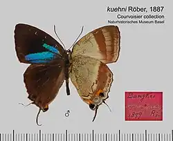 Paruparo kuehni is a butterfly in the family Lycaenidae. It was described by Julius Röber in 1887. It is found in Sulawesi in the Australasian realm.[2]