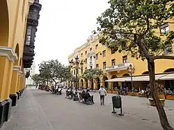 The street was originally planned as the Saint Rose of Lima Avenue (Spanish: Avenida Santa Rosa de Lima) through a Supreme Resolution on April 28, 1944, under the presidency of Manuel Prado Ugarteche, with a width of 18 m (with one-metre sidewalks and 5-metre portals).[1] Its planning took place in the context of the expansion works of the Municipal Palace, where the municipality acquired the land adjacent to it,[2] and was projected on four blocks that would be expropriated to connect the Plaza Mayor with Tacna Avenue,[1] the location of the Sanctuary of Saint Rose of Lima, which was also the focus of a project to build a basilica until its declaration as a National Monument on April 15, 1959.[3]