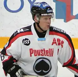 Pasi Peltonen (born 17 February 1972) is a Finnish former professional ice hockey defenceman. Peltonen played his whole career in Porin Ässät of the SM-liiga (now Liiga) playing over 800 matches between 1993 and 2009 and serving as Ässät's captain during four seasons and as assistant captain during six seasons. Peltonen won bronze with Ässät in the 1994–95 season and silver in the 2005–06 season.[1][2] Peltonen is also in second place with all-time regular season SM-liiga penalty minutes with 1402.[3]