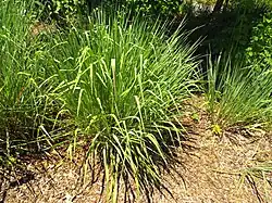 This grass grows in disturbed, wet habitat types such as ditches. It grows in woods and marshy areas.[2]