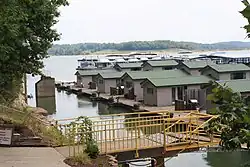 The lake was created by damming the Patoka River about 118.3 miles (190.4 km) above its mouth with the Patoka Lake Dam, a 145 feet (44 m) high rockfill earthen dam that was completed in 1978.[3] The lake is fed by several smaller tributaries including Allen Creek, Painter Creek, and Ritter Creek. After the lake was created several parks and nature preserves were established around it totaling 16,920 acres (68.5 km2). The lake and dam is still managed by a cooperative management team of the Army Corps of Engineers and the Indiana Department of Natural Resources.[4]
