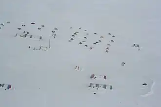 The camp was run by the private company Adventure Network International (now Antarctic Logistics & Expeditions LLC, known as ALE),[1] a company that provides expedition support and tours to the interior of Antarctica.[2] It was constructed in 1987[3] and used during the summer months of November to January.[4] Patriot Hills was for many adventurers and explorers a stop on the way from Chile's Punta Arenas into the interior of Antarctica. The flight time from Punta Arenas is about 4.5 hours.[3]