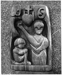 He found his calling as a carver of sacred objects in 1931. He repaired a figure of St Antonio and he later recounted that he knew that someone was going to make 20 dollars from his work and he was promised five. Although the five dollars never appeared, Barela realized that his work had value and he continued to make figures. He was taken on by the Works Progress Administration working with a horse and cart. His carvings were spotted and he was set to do those instead, eventually as part of the Public Works of Art Project. Because he was illiterate he was given a sheet filled with squares to which he would add a cross every day to record his work. This was in 1935 and eventually his work was exhibited at the Museum of Modern Art but he had no ambition to see the eight objects chosen as part of a Federal Arts Project exhibition there.[4] He was lauded by the museum as "the most dramatic discovery" and he was called "discovery of the year" by Time magazine.[5] Two other exhibitions of his work in 1939 further established Barela nationally, the San Francisco Golden Gate Exposition and the American Art Today show at the New York World's Fair.[6]