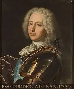 Paul-Hippolyte de Beauvilliers, Duke of Saint-Aignan (15 November 1684, in Paris – 22 January 1776, in Paris) was a French diplomat, soldier, chevalier des ordres du Roi and peer of France.