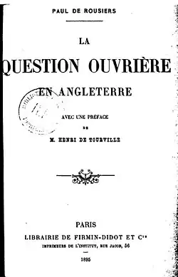 • Paul de Rousiers (1895), La question ouvrière en Angleterre, Preface by Henri de Tourville, Paris: Firmin-Didot, p. 532