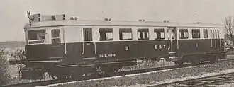 In April 1933, the French State Railways took delivery of four Pauline type 2 bis railcars.[13] One of these was presented at the Paris-Saint-Lazare station in May 1933 as part of the Exposition des automotrices des chemins de fer de l'État.[44] The aim of this exhibition was to show the development of the company's self-propelled and hauled passenger rolling stock since 1921. Exhibits included a Renault VH, several Michelines, a Bugatti, a Schneider railcar, a double-decker État.[45][46][47][48]