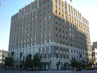 The Paxton Hotel, formerly known as Paxton Manor and currently known as The Paxton, is located at 1403 Farnam Street in Downtown Omaha, Nebraska, United States. Designed by local architect Joseph G. McArthur, the current building was constructed in 1928, with its predecessor dating from 1882. Named for local businessman and community leader William A. Paxton, today the building houses luxury condominia. It is one of the few significant Art Deco structures in Omaha today.[1] Among some of the prominent guests who stayed at the Paxton were Buffalo Bill Cody[2] and William Jennings Bryan, as well as President William McKinley stayed at the Paxton (the original building) during the Trans-Mississippi Exposition in 1898.[3]