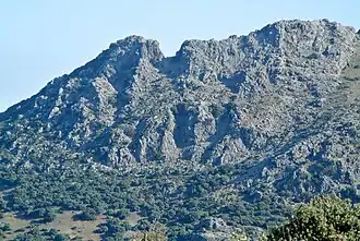 Peñón de Algámitas is a mountain located in the Province of Seville, Andalusia, Spain, with a height of 1121 meters above sea level. It is located in the municipality of Algámitas and shares a border with El Terril. Both mountains belonging to the Sierra del Tablon.[1]