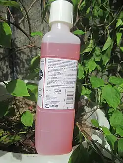 Pedialyte is an oral electrolyte solution manufactured by Abbott Laboratories and marketed for use in children. It was invented by Dr. Gary Cohen of Swampscott, Massachusetts, and was first issued to hospitals in 1966. Non-hospital sales to consumers began in 1969.[1]