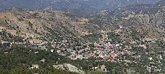 Pedoulas (Greek: Πεδουλάς) is a village in the Nicosia District of Cyprus, located at an altitude of 1,100 metres (3,600 ft) in the Troodos Mountains, 4 km south of Moutoullas. It lies in the Marathasa Valley.[1] The name is derived from the words pediada (valley) and laos (people).[2] It is a popular summer resort.[1]