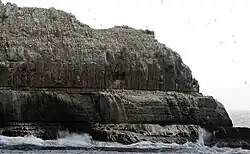 Pedra Branca is a rock islet in the Southern Ocean, off the southern coast of Tasmania, Australia.[1][2] The island is situated approximately 26 km (16 mi) south southeast of South East Cape and is contained within the Southwest National Park, part of the Tasmanian Wilderness World Heritage Site. An erosional remnant of the Tasmanian mainland, the island is approximately 270 m (890 ft) long, 100 m (330 ft) wide, with an elevation of 60 m (200 ft) above sea level. The island is estimated to have separated from the Tasmanian mainland at least 15,000 years ago.[3]